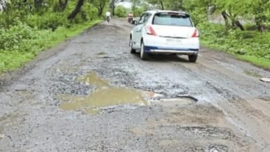 गोटेगांव लाठगाव सड़क मार्ग डामर उखड़ने से गड्ढों में तब्दील हुआ