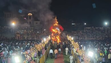 बुराई के प्रतीक रावण का स्टेडियम में हुआ दहन