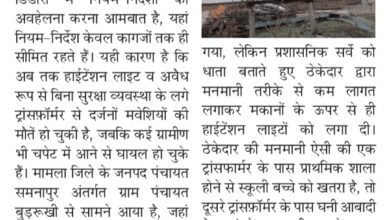 गांवों के बाहर से हुआ था सर्वे, ठेकेदार ने घरों के ऊपर लगा दी हाईटेंशन लाइट