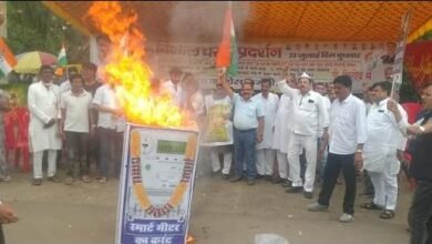 सिवनी में कांग्रेस द्वारा कुशासन के विरुद्ध विशाल धरना प्रदर्शन एवं पुतला दहन