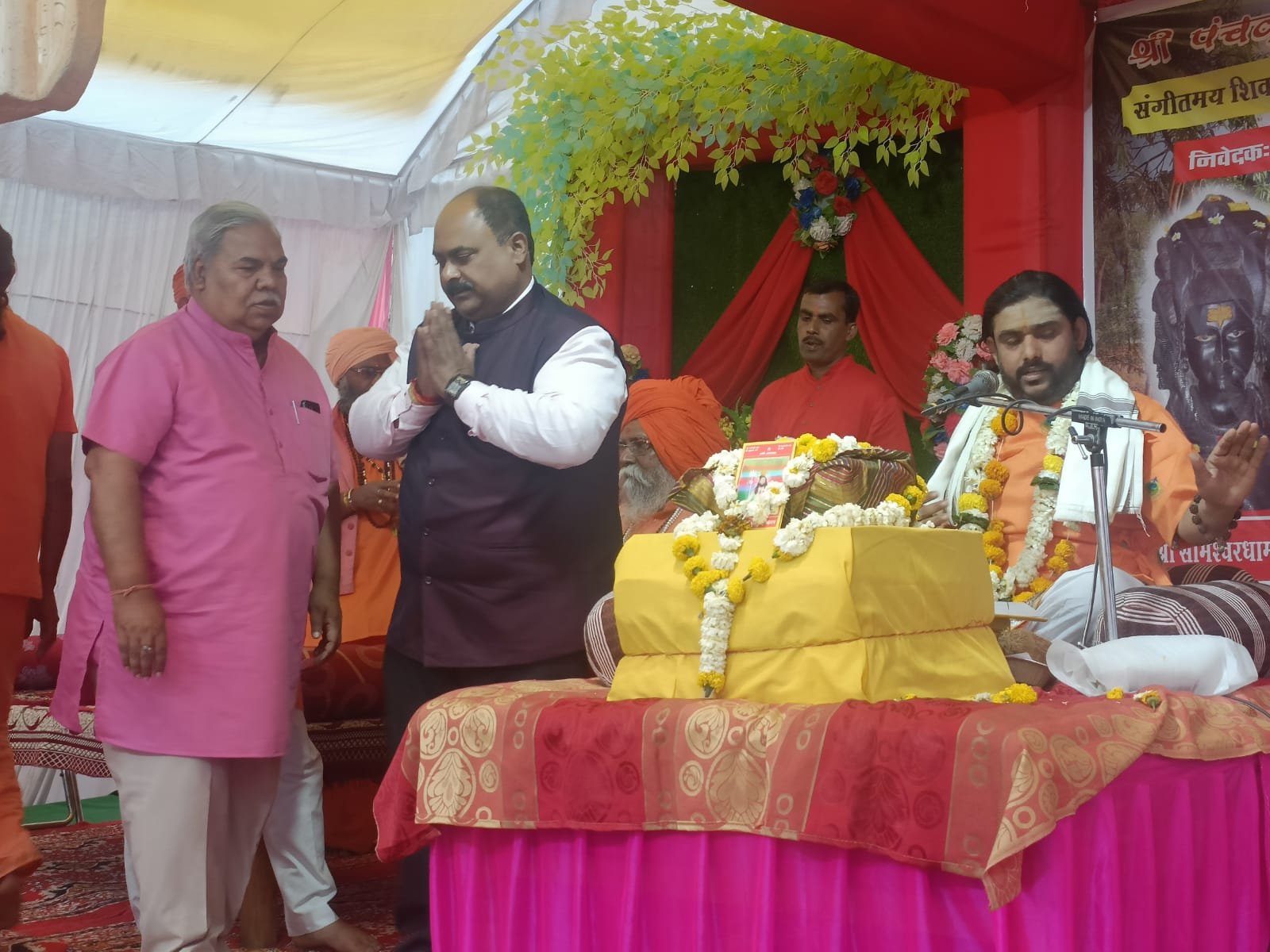 ग्वारीघाट स्थित सोमेश्वर धाम में चल रहे 11 दिवसीय श्रीपंचकुंडात्मक रुद्र महायज्ञ और संगीत में शिव महापुराण कथा एवं शिव पंचाक्षर मंत्र जाप में शामिल होने आए सभी यजमान