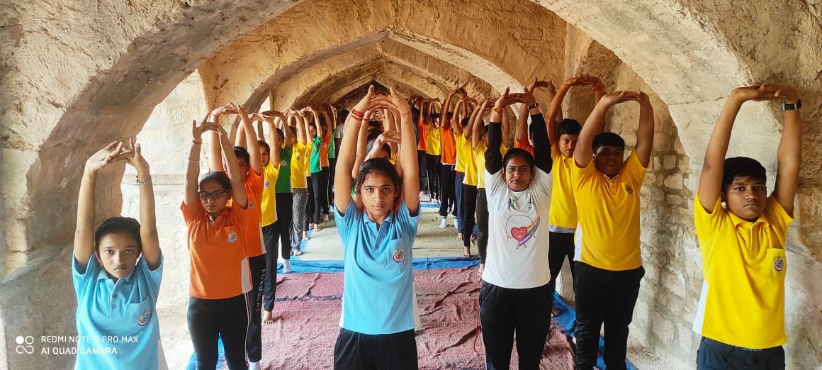उपरोक्त गतिविधियों के साथ-साथ आयुष मंत्रालय द्वारा चयनितउच्च कक्षाओं के विद्यार्थियों कोआज प्रातः प्रार्थना सभा के पश्चात् मदन महल स्थित रानी दुर्गावती किला ले जाया गया ।जिसमें देश के 109 स्कूलों नेहिस्सा लिया था ।चयनित 57 स्कूलों में से ज्ञान गंगा अंतरराष्ट्रीय विद्यालय एक है।किले पर उपस्थित योग गुरुओंएवं विद्यालय के खेल प्रभारी द्वारा उच्च कक्षाओं के सभीविद्यार्थियों नेयोग के विभिन्न गुण सीखेंl तथा योग से होने वाले लाभोंके बारे में जानकर अपनी जीवनशैली को सुधारने की शपथ ली |ताकि वे भविष्य में शारीरिक और मानसिक रूप से स्वस्थ एवं सुखद जीवन व्यतीत कर सकें।सभीविद्यार्थियों ने योग गुरु एवं शाला के खेल प्रभारी के मार्गदर्शन मेंविभिन्न योगासनों का प्रदर्शन भी किया ।शाला प्राचार्यडॉ राजेश कुमार चंदेल जीने सभी प्रतिभागियोंका उत्साहवर्धन किया और योग को अपने जीवन का अभिन्न हिस्सा बनाने की प्रेरणा देते हुए उनके सफल एवं सुखद भविष्य की कामना की |