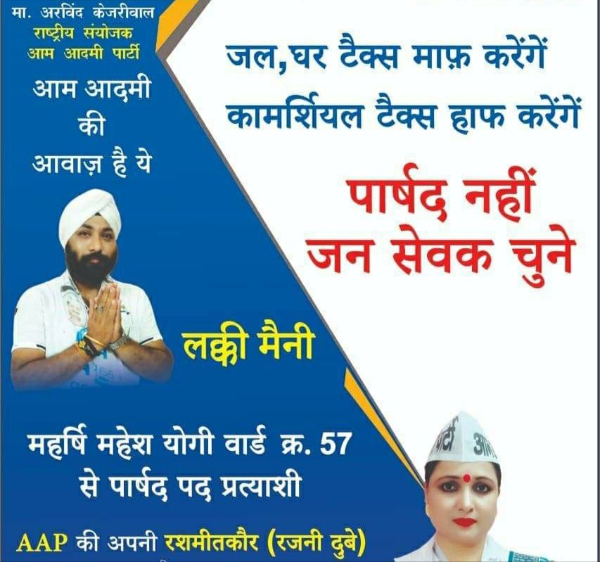 महर्षि महेश योगी वार्ड क्र.57 से आप पार्षद प्रत्याशी रश्मीत,लक्की मैनी ने वार्ड में किया जनसंपर्क:बड़े बुजुर्गो,माताओं बहनों का मिल रहा आशीर्वाद