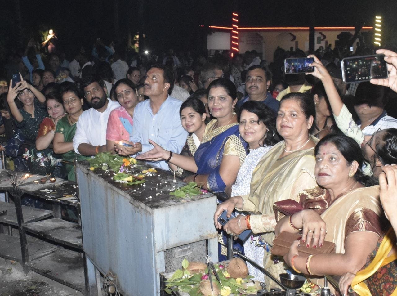 जबलपुर। प्रति वर्ष अनुसार श्रावण मास में शिव धाम कचनार सिटी में श्रद्धालुओं का आगमन बड़ी संख्या में होता है श्रावण मास के प्रथम सोमवार को दिनांक 18 जुलाई 2022 को कचनार सिटी मंदिर प्रांगण में महाआरती नवनियुक्त महापौर जगत बहादुर से अन्नू भैया की गरिमामय उपस्थिति में महा आरती की गई जिसमें वरिष्ठ समाजसेवी सीमा पचौरी एवं अन्य भक्तों के द्वारा पुण्य लाभ अर्जित किया इसी बीच जबलपुर संस्कारधानी की सुरीली आवाज की धनि इशिता विश्वकर्मा भी कार्यक्रम में शामिल हुई इसके पश्चात अन्नू भैया गर्भ ग्रह में विराजमान भगवान भोलेनाथ का पूजन कर आशीर्वाद लिया कार्यक्रम मैं सीमा पचौरी सीमा तिवारी, राधा गुप्ता, उर्मिला यादव आदि मौजूद रहे ।