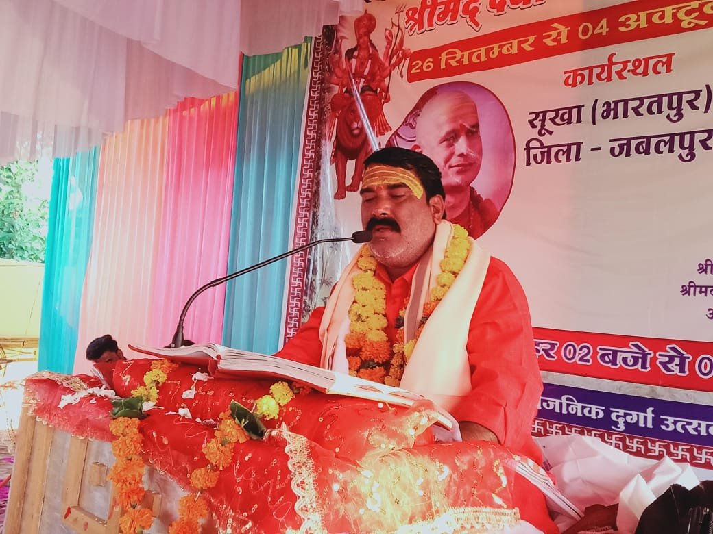 जबलपुर दर्पण चरगवा। ग्राम सूखा में चल रही श्रीमद् देवी भागवत महापुराण कथा आयोजक नवल किशोर दीक्षित द्वारा कराई जा रही है। जिसमे श्रीमद देवी भागवत महापुराण कथा के सातवें दिन कथावाचक ने मां कालरात्रि के प्रकट होने की कथा सुनाई। कहा कि जब-जब पृथ्वी पर पाप बढ़ता है, तब-तब मां भगवती कालरात्रि का रूप धारण कर दुष्टों का संहार करने के लिए प्रकट होती हैं। रविवार दोपहर विधि विधान से पूजा अर्चना की एवं खेरापती मंदिर में झंडा चढ़ाया गया। झंडा चढ़ाने के बाद कथा व्यास आर्चाय मुकेश शास्त्री झोतेश्वर बालो ने मां शेरावाली के भजन से कथा की शुरुआत की। उनके मुख से मां मुरादें पुरी करदे हवाल बांटूंगी.. भजन ने मौजूद श्रद्धालुओं को झूमने पर विवश कर दिया। कथा में अयोजक नवलकिशोर पूजा दीक्षित, यजमान अनिल दीक्षित,रामेश्वर दीक्षित, मूलचंद्र ठाकुर, चुन्नी , रविशंकर डेहरिया, अमित दीक्षित, सुरेन्द्र तिवारी, कमल दीक्षित, फूल सिंह, प्रदीप दीक्षित, भागचंद साहू आदि शामिल रहे।
