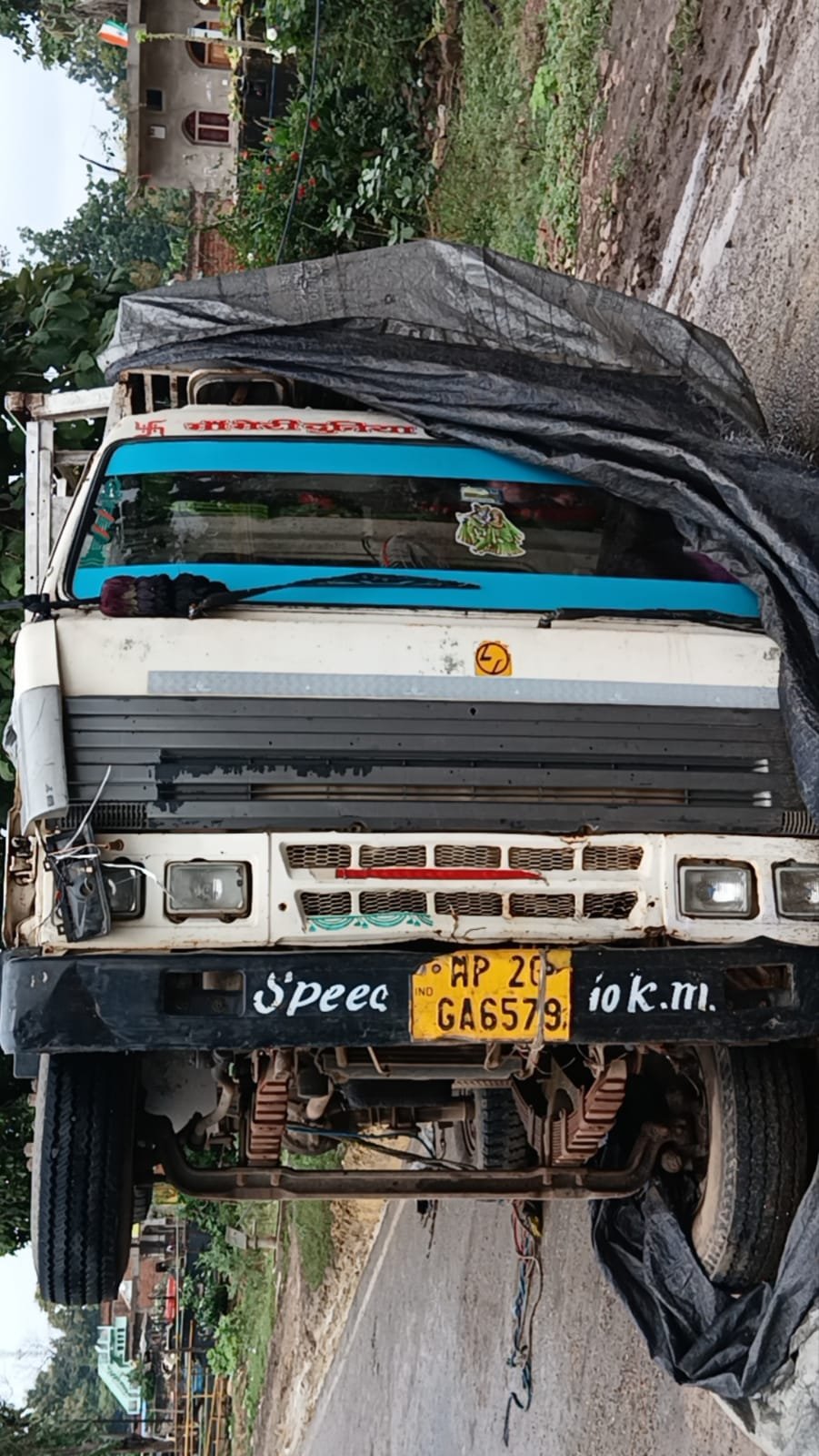 दमोह जबलपुर स्टेट हाईवे रानी दुर्गावती तिराहे पर:सड़क पर बैठे मवेशियों को बचाने के चक्कर में मिनी ट्रक पलटा