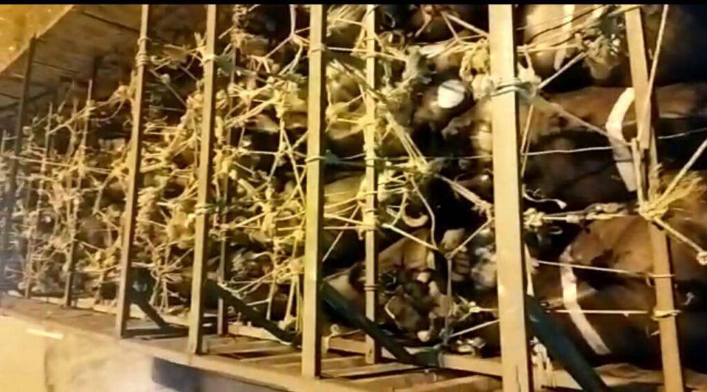 गौरक्षा पदाधिकारियों ने मवेशियों से भरा कंटेनर पकड़कर किया,पुलिस के हवाले