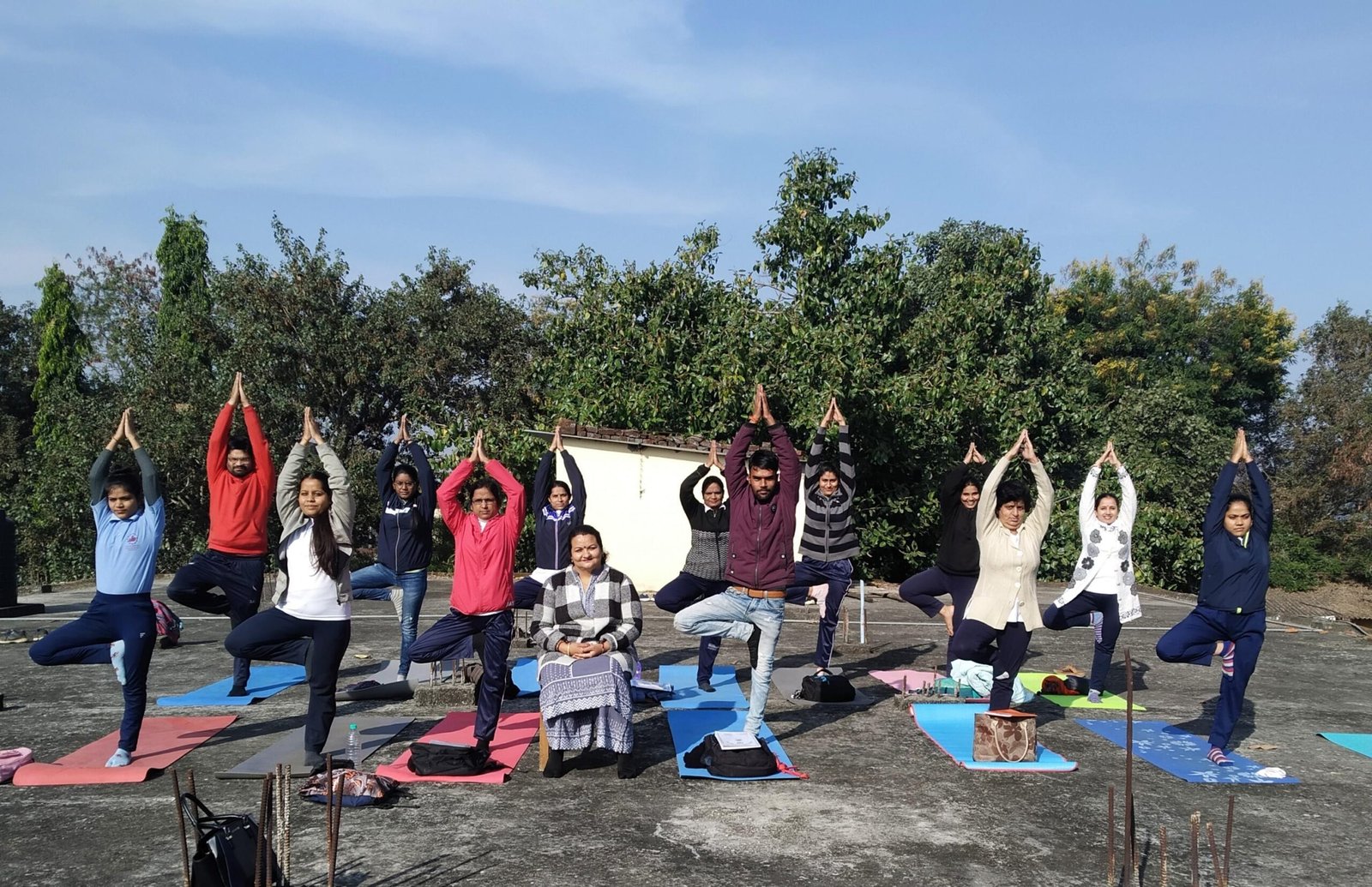 प्राकृतिक वातावरण से सुसज्जित विश्वविद्यालय में बना योग कक्षा