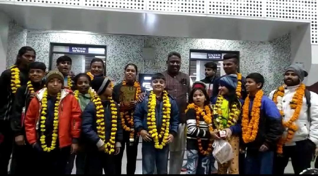 टीम के नगर आगमन पर खेल प्रेमी अभिभावकों और मानव क्रीड़ा एवं कला अकेडमी के वरिष्ठ उपाध्यक्ष पार्षद प्रतिनिधि महापौर सदस्य गुड्डू नवी, एम. सुजेश नायडू, मनोज बेन ज्योति बेन, विशाल श्रीवास्तव, संतोष यादव, जितेंद्र खियानी, अशोक दीपक, पवन नायडू ,आदि ने खिलाड़ियों का मुख मिष्ठान और फूल माला पहनाकर ढोल नगाड़ों के साथ मुख्य रेलवे स्टेशन पर भव्य स्वागत किया।
