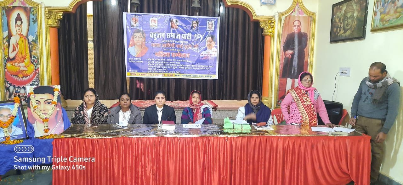 जबलपुर दर्पण। बहुजन समाज पार्टी के जिला महासचिव राकेश समुद्रे ने अपने प्रेस विज्ञप्ति के माध्यम से बतलाया है कि बहुजन समाज पार्टी महिला कार्यकर्ताओं ने प्रथम शिक्षक माता सावित्रीबाई फुले की जयंती के उपलक्ष में बसपा महिला कार्यकर्ता सम्मेलन आयोजित किया गया सम्मेलन का मकसद माता सावित्रीबाई फुले द्वारा समाज में महिलाओं को लिए किए गए कार्य। शिक्षा का अधिकार देने वाली माता सावित्रीबाई फुले थी आज उसी कड़ी में जयंती कार्यक्रम में बसपा महिला कार्यकर्ताओं ने उनके छायाचित्र पर पुष्पित कर उनके किए गए हुए कार्य को समाज के बीच में ले जाने का संकल्प लिया कार्यक्रम में मुख्य अतिथि ज्योति वर्मा वरिष्ठ समाजसेवी बसपा नेत्री सुधा सिंह वरिष्ठ समाजसेवी बसपा नेत्री रेशमा चौधरी आशा गोटिया शिव रानी बिरहा शशि अहिरवार कुंवारी रूबी अहिरवार बालकिशन चौधरी लखन अहिरवार एडवोकेट रामराज राम राजमणि साकेत जानकी प्रसाद राकेश समुंद्री लक्ष्मण चौधरी लक्ष्मण समुंद्री आदि कार्यकर्ता उपस्थित रहे।