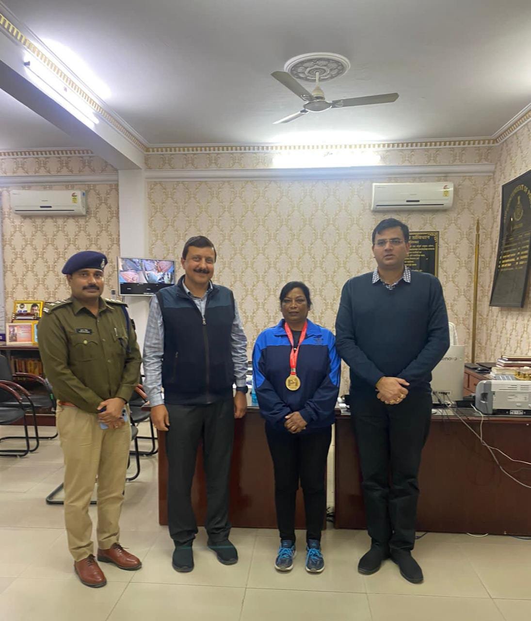 जबलपुर दर्पण। शहर में पदस्थ महाकौशल खेल रत्न तथा विक्रम अवार्ड प्राप्त उप निरीक्षक सुनीता पंच को दिनॉक 15-1-2023 से 20-1-2023 तक औरंगाबाद महाराष्ट्र में आयोजित सब जूनियर, जूनियर, सीनियर, मास्टर्स ओपन नेशनल पावर लिफिटंग बेंच प्रेस प्रतियोगिता में 76 किलो भार वर्ग में बेच प्रेस में ‘‘गोल्ड मैडिल’’ प्राप्त करने पर पुलिस अधीक्षक जबलपुर श्री सिद्धार्थ बहुगुणा (भा.पु.से.) द्वारा पुलिस अधीक्षक कार्यालय में उज्वल भविष्य की कामना करते हुये बधाई देते हुये कहा कि आपने जबलपुर पुलिस का ही नही, पूरे मध्य प्रदेश पुलिस का नाम रौशन किया है, आशा है भवष्यि में भी इसी प्रकार विभाग का नाम रौशन करती रहेंगी।
