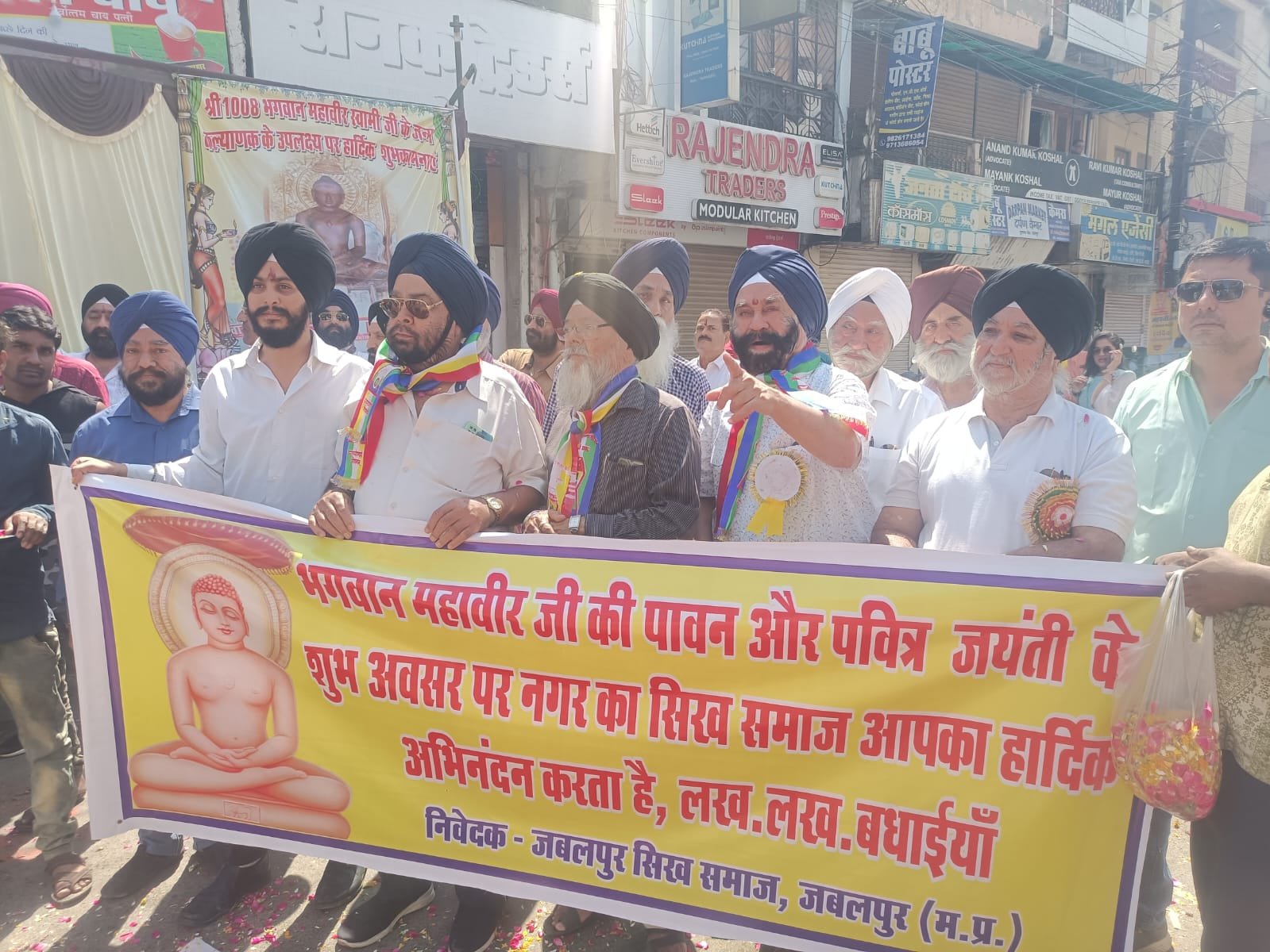 भगवान महावीर स्वामी की शोभायात्रा का नगर के सिख समाज ने किया पुष्प वर्षा के साथ जोरदार अभिनंदन