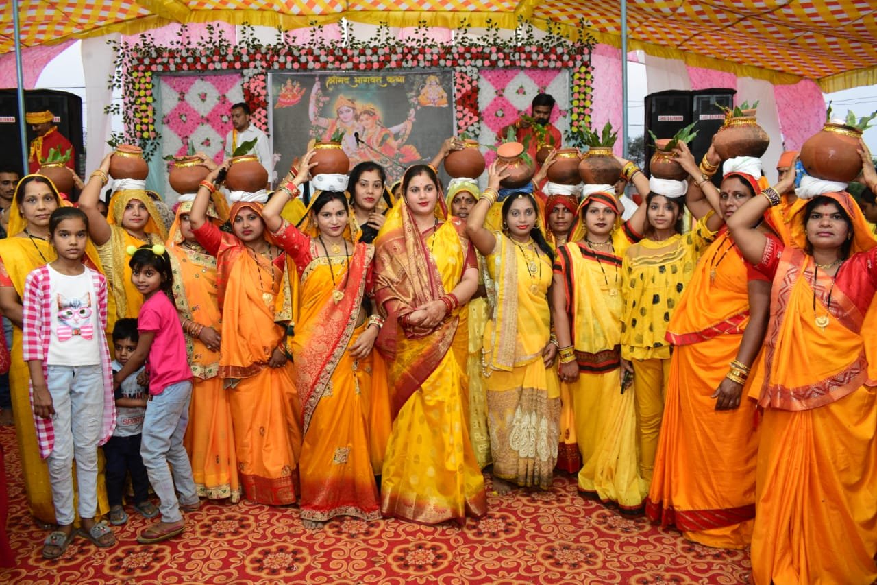 ढोल नगाड़ों के साथ श्रीमद् भागवत कथा का शुभांरभ पड़वार में