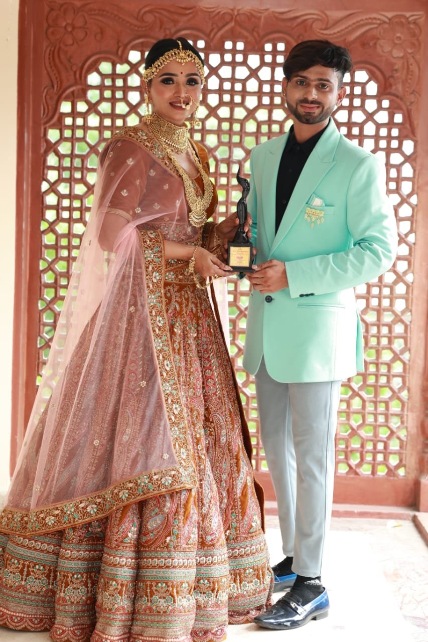 जबलपुर दर्पण। अंकित वाल्मीक को जयपुर में टीवी एक्ट्रस पारुल चौहान ( फेम ऑफ सपना बाबुल का …… बिदाई ,ये रिश्ता क्या कहलाता है)। के द्वारा अवार्ड इनको बेस्ट मेकअप आर्टिस्ट का दिया गया।