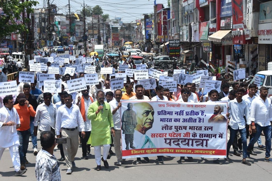जबलपुर दर्पण । भारत के प्रथम उपप्रधानमंत्री व गृहमंत्री भारत रत्न लौह पुरूष सरदार वल्लभ भाई पटेल की मूर्ति स्थापित करने के उद्देश्य से कुर्मी क्षत्रिय समाज द्वारा पैदल पथ यात्रा कर नगर निगम प्रशासन को ज्ञापन सौंप कर मूर्ति स्थापित करने की मांग की गई है | कुर्मी क्षत्रिय समाज के हजारों लोगों द्वारा शांतिपूर्वक ढंक से, अनुशासन के साथ अपना पैदल मार्च निकाला गया | सरदार वल्लभ भाई पटेल के प्रति देश और समाज में जो सम्मान है, उनके लिए कुर्मी क्षत्रिय समाज ने अपनी एकता का परिचय देते हुए शहर में लौह पुरुष की मूर्ति स्थपित करने की मांग की गई है |