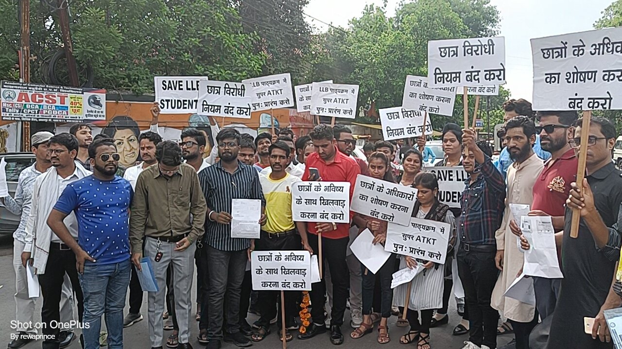 विश्वविद्यालय के नियम के विरोध को लेकर सैकड़ों विधि छात्रों ने अंबेडकर जी की प्रतिमा के नीचे जलाई अपनी अंक सूची