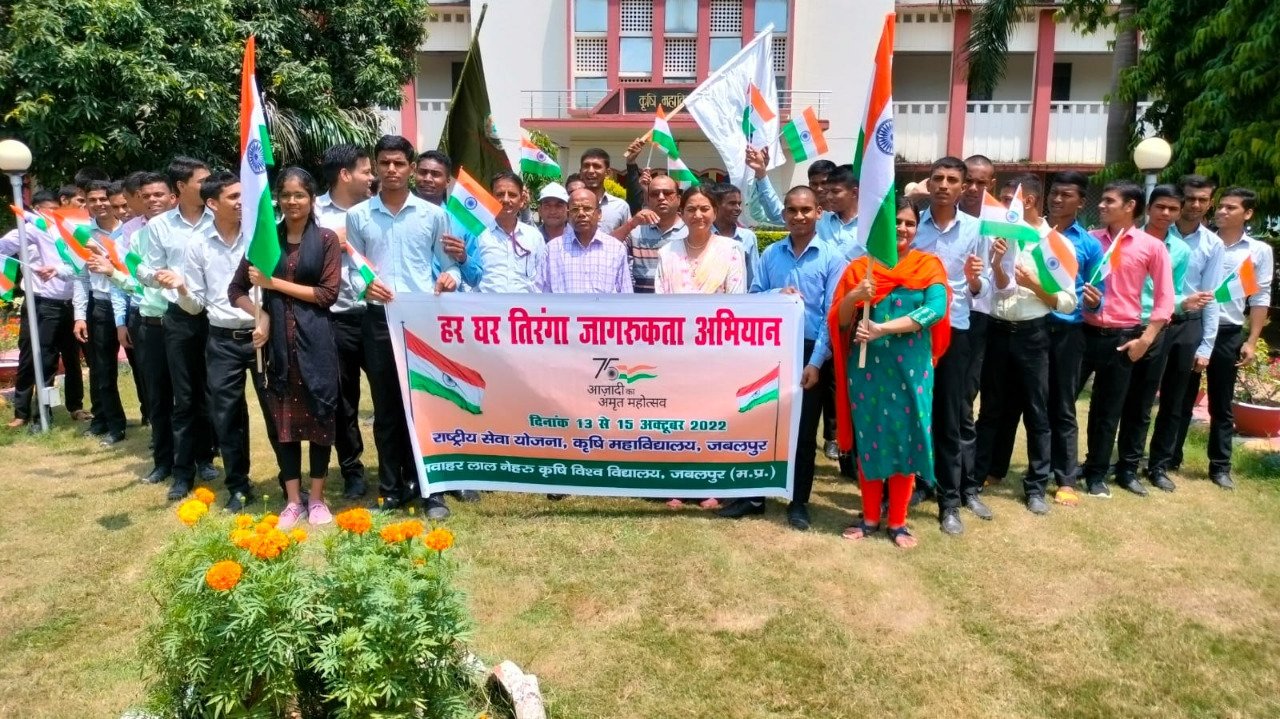 जबलपुर दर्पण। जवाहरलाल नेहरू कृषि विश्वविद्यालय के कुलपति डॉ. प्रदीप कुमार बिसेन की सद्प्रेरणा व मार्गदर्शन में कृषि महाविद्यालय जबलपुर की राष्ट्रीय सेवा योजना, जबलपुर द्वारा आजादी के 75 वें अमृत महोत्सव अन्तर्गत घर-घर तिरंगा अभियान हेतु जागरूकता रैली आयोजित की गई। इस दौरान कृषि महाविद्यालय के अधिष्ठाता डॉ. ए. के. सरावगी, अधिष्ठाता छात्र कल्याण डॉ. अमित शर्मा द्वारा झंडा दिखाकर रैली को रवाना किया। यह रैली विश्वविद्यालय परिसर, सुहागी, कृषि नगर होते हुये कृषि महाविद्यालय के प्रांगण में समापन हुआ। इस दौरान डॉ. ए. के. सरावगी ने कहा कि 13 से 15 अगस्त तक आजादी का अमृत महोत्सव अन्तर्गत विश्वविद्यालय के प्रत्येक शासकीय भवन एवं घर-घर में तिरंगा के सम्मान हेतु तिरंगा फहराया जायेगा। जो प्रत्येक भारतीय को देश व उसके सम्मान हेतु महत्वपूर्ण कार्य है।