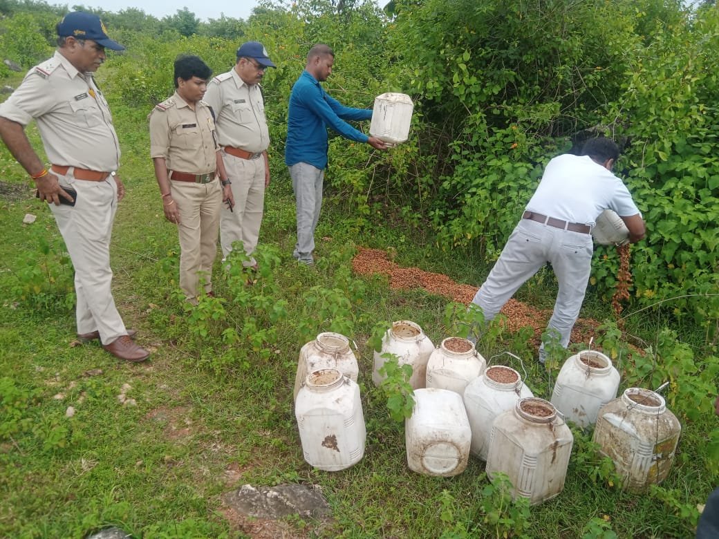 जबलपुर दर्पण। पुलिस अधीक्षक जबलपुर तुषार कांत विद्यार्थी द्वारा जिले मे पदस्थ समस्त राजपत्रित अधिकारियों एवं थाना प्रभारियों को अवैध मादक पदार्थ/शराब की तस्करी में लिप्त लोगों को चिन्हित करते हुये उनके विरूद्ध कार्यवाही हेतु आदेशित किया गया है। आदेश के परिपालन में अति. पुलिस अधीक्षक ग्रामीण श्रीमति सोनाली दुबे एवं नगर पुलिस अधीक्षक बरगी श्री सुनील नेमा के मार्ग दर्शन में थाना तिलवारा की टीम द्वारा 1 आरोपी को 105 लीटर कच्ची शराब के साथ रंगे हाथ पकडा गया है। थाना प्रभारी तिलवारा सुश्री सरिता बर्मन ने बताया कि दिनंाक 21-8-23 की शाम विश्वसनीय मुखबिर से सूचना मिली कि ग्राम खुलरी में मंगल चक्रवर्ती भारी मात्रा में अवैध कच्ची शराब बेचने के लिये रखा है सूचना पर मुखबिर के बताये स्थान पर दबिश दी गई ग्राम खुलरी में मंगल चक्रवर्ती अपने मकान की परछी में 7 नग प्लास्टिक के डिब्बे रखे मिला जिन्के ढक्कन खोलकर चैक करने पर लगभग 105 लीटर कच्ची शराब भरी मिली, आसपास झाड़ियां में तलाश की गई तो 15 लीटर के कुप्पों में लगभग 500 लीटर कच्ची शराब उतारने हेतु लाहन छुपा कर रखा मिला, लाहन को नष्ट करते हुए एवं कच्ची शराब को जप्त करते हुये आरोपी मंगल चक्रवर्ती उम्र 35 वर्ष निवासी ग्राम खुलरी के विरूद्ध धारा 34(2) आबकारी एक्ट के तहत कार्यवाही की गई।