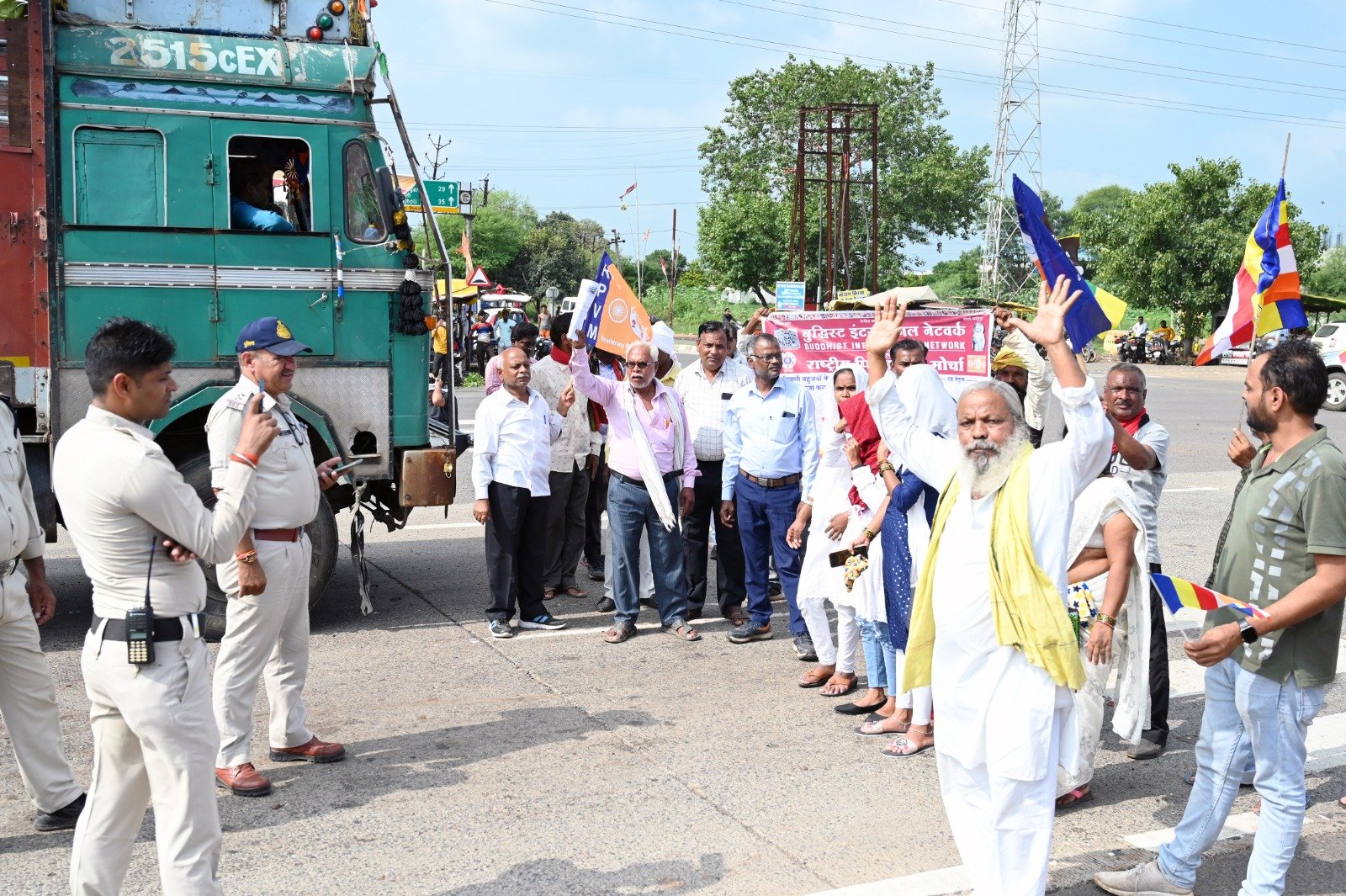 जबलपुर दर्पण। मूलनिवासी भारतीयों की विरासतों पर विदेश से आए यूरेशियन ब्राम्हणों लोगो द्वारा जबरन कब्जा किया जा रहा है जिसके विरोध में पूरे भारत के 567 जिलों भारत बंद नेशनल हाईवे गया।राष्ट्रीय आंदोलन के तहत जबलपुर में खाजरी खिरिया बायपास पर बुद्धिस्ट इंटरनेशनल नेटवर्क एवं राष्ट्रीय पिछड़ा वर्ग मोर्चा के कार्यकर्ताओं ने 09 सितंबर को 2 घंटे NH 30 को जाम करके आंदोलन किया और नारे लगाए काशी मथुरा किसकी बौद्धों की बौद्धों की! आदि जोरदार नारे लगाते हुए आर्कियोलॉजिकल सर्वे ऑफ इंडिया से मांग की यदि निष्पक्ष सर्वे नही किया तो 26 नवंबर 2023 को 5 लाख नागरिक दिल्ली मुख्यालय घेरेंगे, इस आंदोलन में इं प्रवीण गजभीय,रामराज पटेल, विनय भगत, एड त्रिलोक सोनकर, राहुल गजभीय, मंजू मेश्राम, साधना मेश्राम, पूनम बनसोडे,सुशीला गजभिये, मनीषा बनसोडे,संजू गजभिये ,सोनम डोंगरे,प्रमिला डोंगरे, माया पाटिल, पंकज पाटिल, संजय रामटेके, रमन पटेल पिंटू, दयाराम मरकाम, मंगल गोंड, धनेश्वर उइके , छोटे भाई कुर्मी, देवकरण हल्दकार , शिव प्रजापति, सुखराम लोधी, विजय पटेल, प्रवीण मेश्राम, निरंजन बर्मन, विवेक पटेल, प्रशांत पटेल, देव पटेल, भोले मददू , अरविंद बिरहा, चिंतामन , सुरेश डोंगरे, राकेश नन्हेते, आशीष चौधरी, आकाश चौधरी, अभिषेक चौधरी, प्रकाश धुर्वे, ओमकार धुर्वे, धर्मेंद्र काछी, प्रकाश कोल, चंद्रदेव कोल, कालू सेन, आदि जोर दार नारे लगाते हुए 2 घंटे खजरी खिरिया बायपास जाम किया।