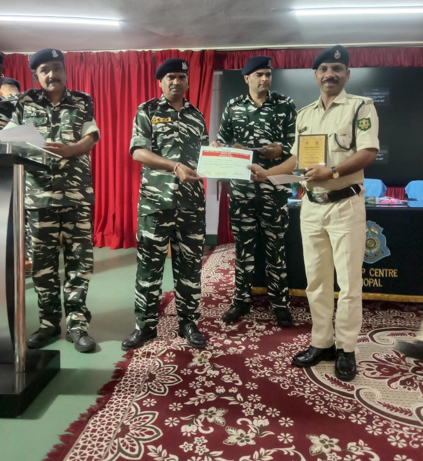 आशु खान शहपुरा। NHRC के द्वारा कराये जा रहे मानव अधिकार वाद -विवाद प्रतियोगिता का आयोजन CRPF कैम्प बंगरसिया में किया गया जिसमे कैफ के कुल फोर्स BSF,CISF,ITBP,SSB,CRPF, RPF के जवान अलग अलग प्रांतो से आकर भाग लिए बहस दो भाषाओ पर रखा गया था जिसमे CISF अंग्रेजी प्रथम तो हिंदी सेकेंड आया वही BSF हिंदी में प्रथम रो अंग्रेजी सेकेंड आया, BSF, CISF दोनों का अच्छा प्रर्दशन वही CRPF तीसरे स्थान पर बना रहा, कार्यक्रम के मुख्यतिथि डॉ. श्री RLS YADAV-IPS रिटायर DG MP POLICE एवं IG =CRPF,DIG -के रि. पुलिस बल निर्णायक मंडल के रूप में मौजूद रहे, इसके अलावा सैकड़ो जवान जिसमे कमांडेट से लेकर अन्य रैक मौजूद रहे,अमित शर्मा (भोपाल )ने मानव अधिकार के पक्ष में शानदार बकालत कर तालिया बटोरी, वही टी एस परस्ते जी ने आतंकवाद के ऊपर जबरदस्त गरजते हुये मानव अधिकार के कार्यशैली पर सवाल उठाए परस्ते ने कहा मानव अधिकार कि पराकष्ठा को कायम रखना हैं तो जिसमे देश में फल फुल रही मानव तस्करी को रोकना होगा, जेलों कि दयनीय स्थिति जो खुद एक बिस्फोटक रूप ले चुके हैं सुधारना होगा, मानव अधिकारों कि आवाज दलित, शोषित, वंचित, चौथी पंक्ति तक पहुचानी होगी, इतना ही अनाथय से लेकर मुर्दा घरों एवं पागलखानों पर नज़र रखनी होगी टी एस परस्ते( म प्र. )उमरिया जिले के एक छोटे से गांव करही आदिवासी बहुल्य क्षेत्र से आते हैं, लेकिन जब उन्हें राष्ट्रीय स्तर पर मंच जब मिला तो उन्होंने शानदार तर्क और दलील पेस किये, उन्होंने कहा महोदय समाज के भटके हुये लोगो को मुख्य धारा से जोड़ने एवं समाज के बीच समाजस्य्ता स्थापित करने के लिए कही न कही लक्षमन रेखाएं लांघनी ही पड़ती हैं, लोहा का असली स्वाद उस घोड़े को मालूम पड़ता हैं जिसके मुँह में लोहे का लगाम लगा हो, इसी लिए जवान अपनी नौकरी कि असुरक्षा कि बजह से उतना ही करता हैं कि सांप मरे न मरे लाठी नहीं टूटनी चाहिए,परस्ते जी तरह तरह मनमोहक दलील पेस कर ट्राफी अपने नाम किया !