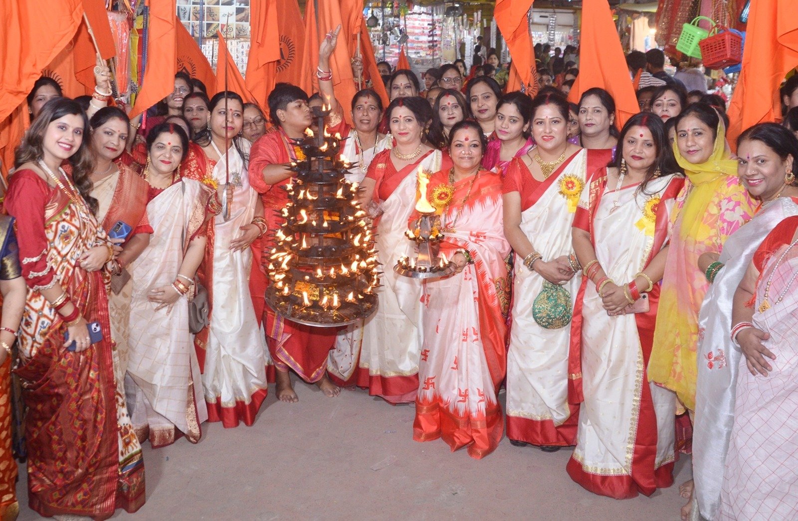जबलपुर दर्पण। विगत चार वर्षों से श्री बड़ी खेरमाई मंदिर महिला समिति के द्वारा भव्य श्रद्धा भक्ति भाव व संकल्पों की भव्य महारती का आयोजन शीध्र माघ शुक्ल पक्ष विक्रम संवत् २०८० तदानुसार २० अक्टूबर व २२ अक्टूबर दिन शुक्रवार व रविवार को संध्या ६ बजे दुर्गा मंदिर चौक से खेरमाई मंदिर तक पहुंची । अल्प साधना का एक स्वरूप महारतीं के साथ पथ प्रदर्शन करते हुए माँ की महिमा का गुणगान करती हुई माँ की बेटिया भोग प्रसाद चढ़ाकर कई महाआरती की गई । इस महाआरती में शहर की महिलाओं ने बढ़ चढ़कर भाग लिया और इस महाआरती को भव्य रूप दिया । जिसमें सभी महिलाओं ने एक ड्रेस कोड में तैयार होकर महाआरती की इस अवसर पर समिति अध्यक्ष -रीना पाल, शोभना मिश्रा, ममता कुकरेजा, मनीषा दुबे, भक्ति शर्मा, जयंती पौदर, विमला जगवानी, करिश्मा शर्मा, शिल्पी अग्रवाल, दिशा चोबे, अंजलि भटीजा, राखी जाट, वर्षा जांगड़े, रंजना तिवारी, रीना दीक्षित, सीधी अग्रवाल, शिवानी शर्मा, आैर सुनीता आहुजा शामिल हुए ।