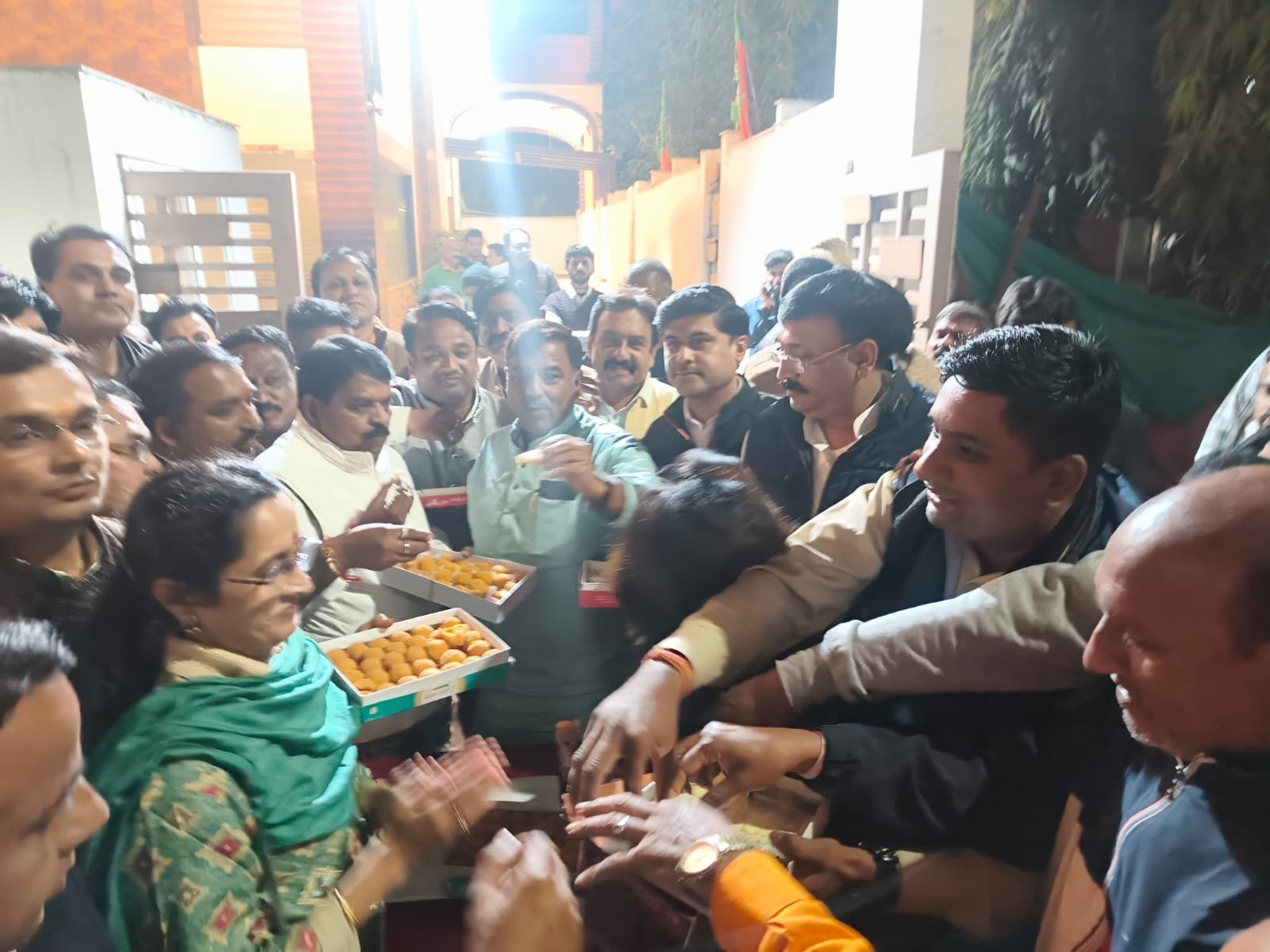 मोहन यादव को विधायक दल का नेता बनाए जाने पर भाजपा कार्यालय में हुआ मिष्ठान वितरण