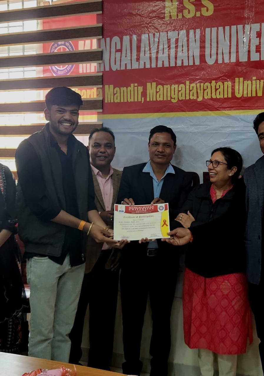 जबलपुर दर्पण।मंगलायतन विश्वविद्यालय जबलपुर की स्वाबित पोषित nss इकाई के सभी संघर्षवादी स्वयंसेवकों को आज प्रमाण पत्र व पुरस्कार वितरण कर सम्मानित किया गया । कार्यक्रम की अध्यक्षता विश्वविद्यालय की उपकुलपति महोदया डॉक्टर विनीता कौर सेलुजा द्वारा करी गई ।कार्यक्रम मै पधारे मुख्य अतिथि डॉ.सोभाराम मेहरा {एनएसएस कॉर्डिनेटर RDVV}, डॉ.देवांशु गौतम {प्रभारी एनएसएस ओपन यूनिट RDVV} & डॉक्टर शैलेश प्रशाद {एनएसएस प्रभारी} द्वारा स्वयंसेवकों को प्रमाण पत्र वितरण ब प्रोत्साहन दिया गया ।