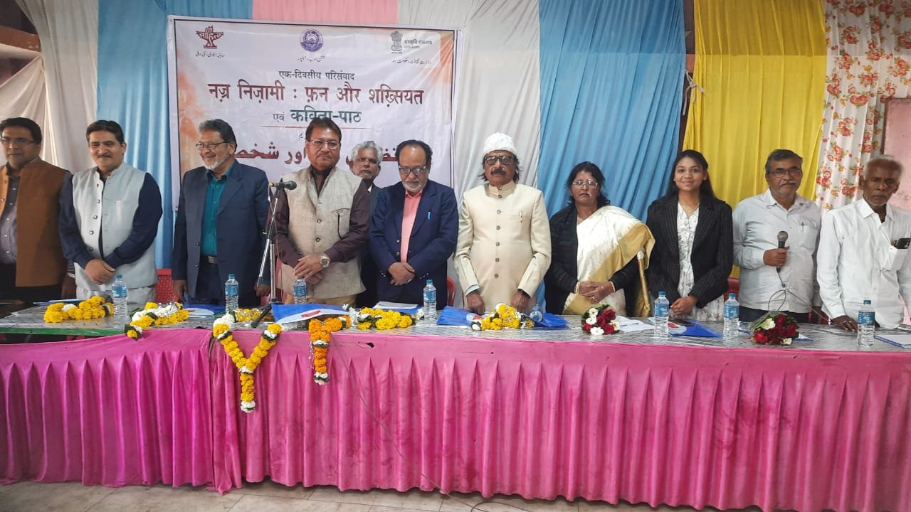 जबलपुर दर्पण। साहित्य अकादमी और गुलशन,-ए-अदब जबलपुर के संयुक्त तत्वावधान में आयोजित एक दिवसीय सेमिनार उस्ताद नज़्र निजमी की फन और शखिसयत का उद्घाटन श्री एस के मुददीन ने किया। अध्यक्षता चंद्र भान ख्याल ने की। डॉक्टर महताब आलम, डाक्टर जलीलुररहमा, डा बिलकीस जहां,डा एम एल बहोरिया अनीस,बद वासती , मुस्तकीम रजा,डा अशफाक आरिफ, सुश्री स्तुति अग्रवाल,ने अपने वक्तव्य प्रस्तुत किये। शुरुआत में बाबू अनवर निजामी,शेख निजामी, शकील साजिद,शफीक अंसारी ने अतिथियों का स्वागत किया।द्वितीय चरण में मुशायरा डा अली अब्बास उम्मीद की अध्यक्षता में तथा मुख्य अतिथि जनाब मतीन अंसारी ने उद्घाटन किया मुशायरा में चन्द्र भान ख्याल, मेहताब आलम, बाबू अनवर निजामी, शेख निजामी,सिराज आगाजी, शकील दिलकश,मोलवी रियाज आलम,राशिद राही,एम एल बहोरिया अनीस ने अपना कलाम पेश किया। अंत मे आभार प्रदर्शन शफीक अंसारी ने किया।