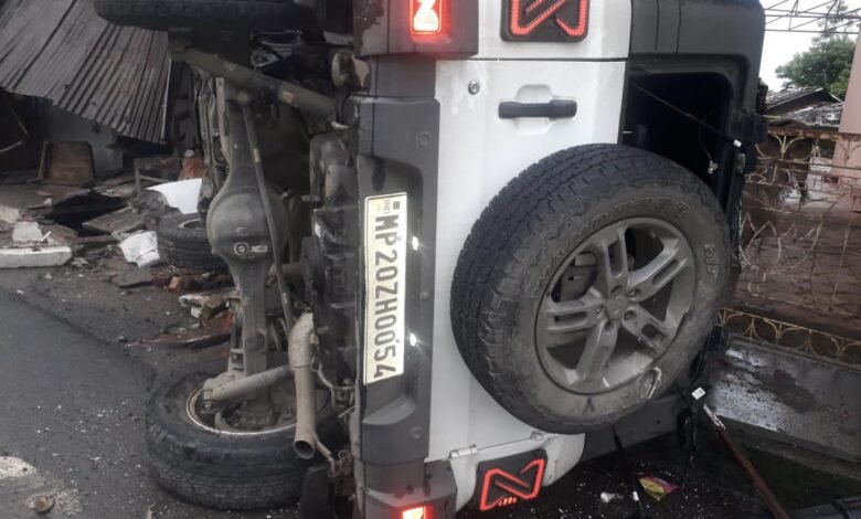 कार ने गाय-बछड़े को टक्कर मारी दीवार में जा घुसी