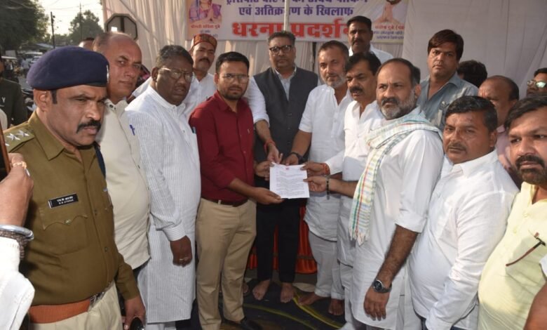 यातायात व्यवस्था एवं अवैध ट्रांसपोर्ट संचालन के खिलाफ कांग्रेस ने दिया धरना