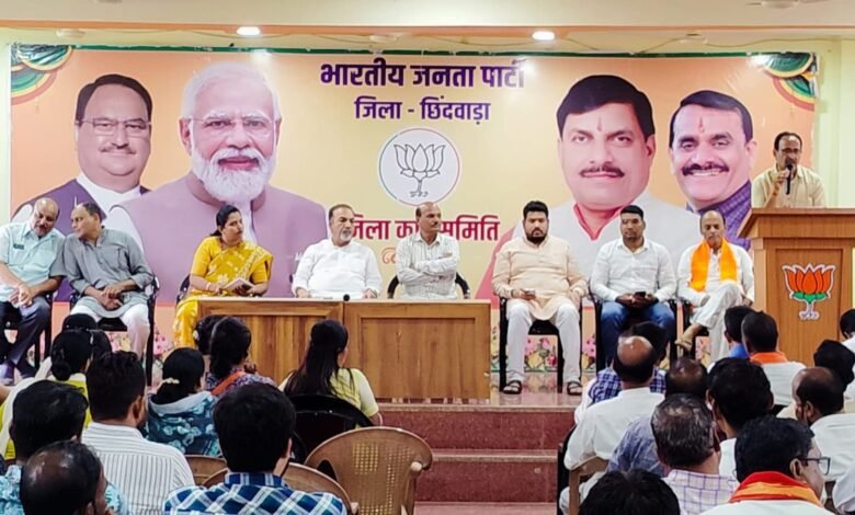 छिंदवाड़ा जबलपुर दर्पण । भारतीय जनता पार्टी जिला कार्यालय छिंदवाड़ा में भाजपा के सभी मोर्चा जिला पदाधिकारियों एवं प्रकोष्ठों के जिला संयोजक, सहसंयोजक की संयुक्त बैठक भाजपा जिलाध्यक्ष शेषराव यादव की अध्यक्षता में संपन्न हुई । भाजपा जिलाध्यक्ष शेषराव यादव ने बैठक को संबोधित करते हुए कहा कि प्रदेश नेतृत्व द्वारा दिया गया कार्यक्रम ‘‘एक पेड़ माँ के नाम’’ अभियान को 15 अगस्त तक पूर्ण करना है, जिसमें सभी मोर्चो एवं प्रकोष्ठ के प्रत्येक पदाधिकारियों को अपने क्षेत्र में सक्रिय भागीदारी सुनिश्चित करते हुए एक पेड़ माँ के नाम लगाकर अभियान को सफल बनाना है साथ ही प्रत्येक माह नियमित रूप से सभी मोर्चो एवं प्रकोष्ठ की जिला बैठक एवं मंडल बैठक अनिवार्य रूप से आयोजित करना है एवं मोर्चो में ज्यादा से ज्यादा लोगों को जोड़कर संगठन को मजबूत करना है । श्री यादव ने कहा कि प्रधानमंत्री नरेंद्र मोदी की मन की बात कार्यक्रम को प्रत्येक बूथ में सुनकर संगठन ऐप में अपलोड करना है एवं आगामी दो दिन में मंडल की बैठक करना तथा प्रत्येक पंचायत में सेवा सहकारी समिति बननी है जिसमें अपनी सहभागिता सुनिश्चित करना है । उन्होंने आगे कहा कि मंडल की बैठकों में मोर्चा प्रकोष्ठ के जिला पदाधिकारियों को आवश्यक रूप से बुलाना है ताकि हर कार्यकर्ता को काम एवं हर काम को कार्यकर्ता मिल सके। बैठक का संचालन किसान मोर्चा जिलाध्यक्ष संजय पटेल एवं आभार प्रदर्शन भाजपा जिला महामंत्री टीकाराम चन्द्रवंशी ने किया । बैठक में किसान मोर्चा प्रदेश मंत्री संजय सक्सेना, किसान मोर्चा जिलाध्यक्ष संजय पटेल, महिला मोर्चा जिलाध्यक्ष श्रीमती गरिमा दामोदर, युवा मोर्चा जिलाध्यक्ष योगेन्द्र प्रताप राणा, अजजा मोर्चा जिलाध्यक्ष बीरपाल इवनाती, पिछड़ा वर्ग मोर्चा जिलाध्यक्ष जगेन्द्र अल्डक, अल्पसंख्यक मोर्चा जिलाध्यक्ष रिजवान कुरैशी, अरूण शर्मा, प्रदीप चौधरी, प्रकोष्ठों के जिला संयोजक संतोष पटेल, मनोज चौरे, भारत घई, डॉ. कृष्णा हरजानी, अरविंद राजपूत, संतोष साहू, शिरिन विजय आनंद दुबे, अंकित सोलंकी, संजीव साहू, शैलेन्द्र यादव, रूपेश मानेराव, मनोज मंडराह, अलकेश साव, गुरूप्रसाद धुर्वे, सिपतराम यदुवंशी, गोपाल यदुवंशी, श्रीमती मीना दुबे, श्रीमती ललिता वर्मा, श्रीमती माया डेहरिया, पंकज मुंगिया, जितेन्द्र शाह, कुबेर सूर्यवंशी, शिखर पांडे, अश्विनी यदुवंशी, बंटी राय, दिन्शु यादव, श्रीमती अमिता बरैया, नीलू क्षेत्री, सोनम डेहरिया, रेखा साहू, रेखा लाडे, सपना सोनी, ममता ठाकुर सहित मोर्चो के जिला पदाधिकारी एवं प्रकोष्ठों के जिला संयोजक-सहसंयोजक उपस्थित रहे ।