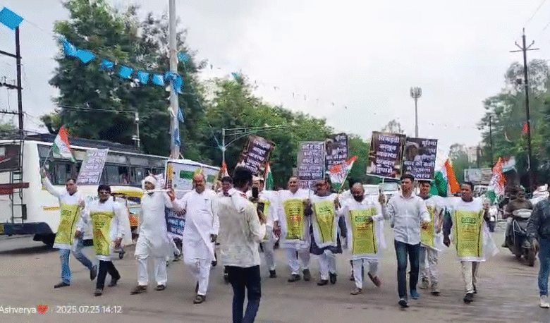 सिवनी जबलपुर दर्पण । मध्यप्रदेश कांग्रेस कमेटी के अध्यक्ष सम्मानीय जीतू पटवारी के निर्देशानुसार 24 जुलाई 2025 को जिला कांग्रेस कमेटी सिवनी द्वारा सिवनी में कुशासन, बढ़ती महंगाई, अव्यवस्थित बिजली आपूर्ति एवं जनविरोधी नीतियों के विरुद्ध एक विशाल प्रदर्शन का आयोजन किया गया। इस प्रदर्शन का नेतृत्व जिला कांग्रेस अध्यक्ष श्री राजकुमार खुराना जी एवं जिला कांग्रेस सहप्रभारी श्री विवेक अवस्थी जी ने किया। कार्यक्रम की शुरुआत इंदिरा भवन कार्यालय से “कुशासन की अंतिम यात्रा” निकालकर अम्बेडकर प्रतिमा स्थल तक की गई। इसके पश्चात् जनभावनाओं को स्वर देते हुए धरना प्रदर्शन किया गया और स्मार्ट मीटर की लूट के प्रतीकस्वरूप पुतला दहन किया गया। प्रदर्शन के उपरांत कांग्रेस जनों ने राज्यपाल महोदय के नाम जिला प्रशासन को ज्ञापन सौंपा, जिसमें निम्नलिखित प्रमुख माँगें रखी गईं।