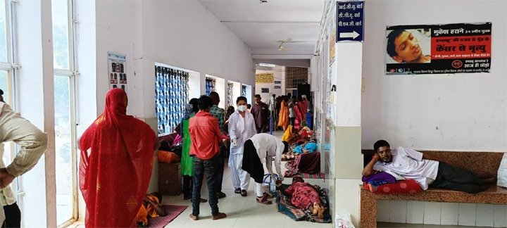 अस्पताल की फर्श में मरीज का हो रहा उपचार