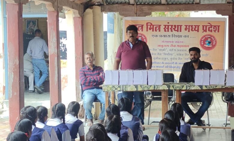 जबलपुर दर्पण । छात्र मित्र संस्था मध्यप्रदेश द्वारा चेरीताल स्थित शासकीय उच्चतर कन्या विद्यालय की 150 बच्चियों को जिसमें निम्न आय वर्ग के बच्चे पढ़ते हैं वहाँ बच्चियों को 5-5 रजिस्टर वितरित किये। आयोजन में संस्था के संस्थापक अनुराग जैन गढ़ावाल ने बच्चो को पढ़ाई की उपयोगिता के बारे में विचार रखे, साथ ही संस्था सदस्यों का परिचय दिया। पार्षद हर्षित यादव ने बच्चो को इस माह के बारे में विस्तार से बताया। सहयोगी श्रीमती अनुश्री जैन बच्चो के साथ अपना जन्मदिन मनाया।