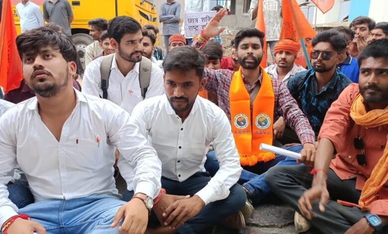 तानाशाह प्राचार्य सीएम राइस दिनेश पुरी गोस्वामी के खिलाफ अखिल भारतीय विद्यार्थी परिषद का जोरदार प्रदर्शन