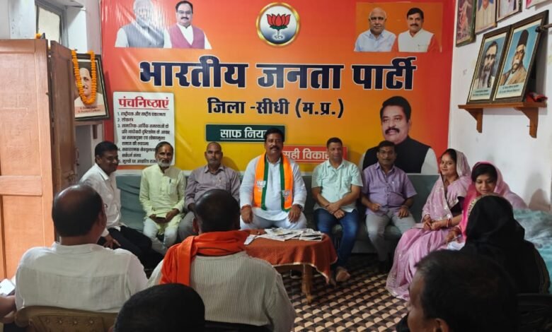 सीधी जबलपुर दर्पण । प्रदेश नेतृत्व के निर्देशानुसार भाजपा जिला अध्यक्ष देव कुमार सिंह चौहान की अगुवाई में आगामी 1 सितंबर को स्थानीय मानस भवन के सामने के प्रांगण में प्रधानमंत्री नरेंद्र मोदी की स्वर्गीय माता जी के खिलाफ कांग्रेस नेता राहुल गांधी एवं अन्य कांग्रेसी नेताओं द्वारा अभद्र और अमर्यादित टिप्पणी एवं अशोभनीय शब्दों का प्रयोग करने के खिलाफ धरना प्रदर्शन दोपहर 1:30 बजे करेगी।जिसकी तैयारी बैठक पार्टी कार्यालय में भाजपा जिला अध्यक्ष देव कुमार सिंह चौहान की अध्यक्षता में आयोजित हुई। जिसमें प्रमुख रूप से जिला उपाध्यक्ष अनिल पाण्डेय, संदीप द्विवेदी, जिला महामंत्री अशोक पटेल, विनोद साकेत, ज्योति कुशवाहा, मंडल अध्यक्ष पंकज पाण्डेय, मनीला सिंह चौहान, युवा मोर्चा अध्यक्ष निशांत मिश्रा, महिला मोर्चा अध्यक्ष पूनम सोनी, पुनीत नारायण शुक्ला, बाबूलाल कुशवाहा, संजय सिंह चौहान, सूर्य प्रताप सिंह, राजेश द्विवेदी, दिनेश गुप्ता, अन्नू पाण्डेय, मुन्ना लाल चौधरी, जितेन्द्र सिंह परिहार सहित अन्य पार्टी पदाधिकारी एवं कार्यकर्ता उपस्थित रहे।