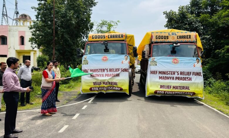 मुख्यमंत्री डॉ. मोहन यादव की पहल पर छत्तीसगढ़ के बाढ़ पीडि़तों के लिए राहत सामग्री से भरे 02 ट्रक रवाना किये गए है। इनमें बर्तन, कपड़े, चादर, कम्बल एवं राशन सामग्री शामिल है। बाढ़ पीडि़तों के लिए 100 क्विंटल चावल, 10 क्विंटल दाल, 15 क्विंटल नमक, 1500 कम्बल, 02 हजार चादर एवं 950 बर्तन सेट मध्यप्रदेश की ओर से छत्तीसगढ़ भेजे गए है। मध्यप्रदेश द्वारा उपलब्ध करायी गई यह मदद छत्तीसगढ़ के बाढ़ पीडि़तों के लिए मुश्किल वक्त में सहारा बनेगी।