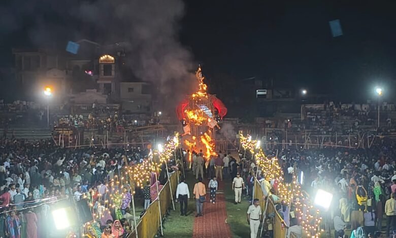 बुराई के प्रतीक रावण का स्टेडियम में हुआ दहन