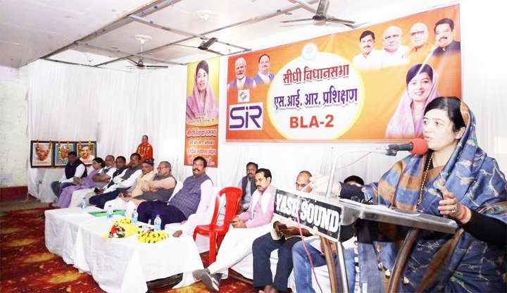 सीधी जबलपुर दर्पण । विधानसभा स्तरीय बीएलए 2 प्रशिक्षण कार्यक्रम को संबोधित करते हुए सीधी विधायक रीती पाठक ने कहा कि यह प्रशिक्षण लोकतंत्र को मजबूत करने की दिशा में एक महत्वपूर्ण पहल है। जिसमें प्रत्येक मतदाता के नाम की शुद्धता और सहभागिता सुनिश्चित करने की आवश्यकता है। आप जिस बूथ पर अपना वोट डालते हैं वहां नियुक्त बूथ लेवल ऑफिसर आपसे संपर्क करेगा, यदि नहीं करता है तो भाजपा कार्यकर्ता बीएलए-2 के माध्यम से अपना फार्म भरकर जमा कर सकते हैं। कार्यकर्ताओं का मार्गदर्शन करते हुए विधायक श्रीमती पाठक ने कहा कि प्रत्येक पार्टी पदाधिकारी और कार्यकर्ता विशेष रूप से बीएलए प्रत्येक तय किए गए बीएलओ से संपर्क करके शुद्ध और प्रामाणिक मतदाता सूची तैयार करवाने में अपनी सहभागिता सुनिश्चित करें। जिससे योग्य और निर्धारित मापदंड को पूर्ण करने वाला कोई भी व्यक्ति मतदाता सूची में नाम दर्ज होने से ना चुके। अध्यक्षीय उद्बोधन में भाजपा जिला अध्यक्ष देव कुमार सिंह चौहान ने कहा कि सरकारी कर्मचारी बूथ लेवल ऑफिसर घर-घर जाकर एसआईआर क्रिया के अंतर्गत नवीन वोटर लिस्ट तैयार कर रहे हैं। इस वोटर लिस्ट में पार्टी के प्रत्येक कार्यकर्ता और पदाधिकारी अपनी अपनी जिम्मेदारी का निर्वहन करते हुए इस कार्य में सहयोग करें। भाजपा जिला अध्यक्ष श्री चौहान ने जिले के प्रत्येक मतदाता से अपील की है कि वह मतदाता सूची शुद्धिकरण में अनिवार्य रूप से भाग ले। भारत विश्व का सबसे बड़ा लोकतंत्र होने के नाते मतदाता सूची का शुद्धिकरण अत्यंत आवश्यक था। भाजपा जिला अध्यक्ष श्री चौहान ने चुनाव आयोग के इस फैसले की तारीफ करते हुए एसआईआर की प्रक्रिया में पार्टी की कार्यकर्ताओं की भूमिका को विस्तार से बताया। भारतीय जनता पार्टी के वरिष्ठ नेता और एस आई आर प्रक्रिया के जिला संयोजक डॉ. देवेंद्र त्रिपाठी ने कार्यकर्ताओं का मार्गदर्शन करते हुए कहा कि मतदाता शुद्धिकरण की प्रक्रिया 4 नवंबर से 4 दिसंबर तक चलेगी। इस दौरान बूथ लेवल ऑफिसर अर्थात बीएलओ घर-घर जा रहे हैं। वह कम से कम तीन बार आपके घर जाएंगे। उन्हें आपको सहयोग करते हुए दिए गए फार्मो को अच्छे से भरकर जमा करना है। इस अवसर पर प्रमुख इस अवसर पर प्रमुख रूप से विधानसभा संयोजक पुष्पराज सिंह चौहान, उपाध्यक्ष विश्वबंधु धर द्विवेदी, जिला महामंत्री अनिल पाण्डेय, नगर मंडल अध्यक्ष पंकज पाण्डेय, सेमरिया मंडल अध्यक्ष राजेश द्विवेदी, कुचवाही मंडल अध्यक्ष योगेन्द्र सिंह चौहान, अमरपुर मंडल अध्यक्ष आशीष तिवारी, बरमबाबा मंडल अध्यक्ष सुबेदास यादव, प्रभारी सुधीर शुक्ला, उमाशंकर यादव, मुनिराज विश्वकर्मा, रामराज गुप्ता, प्रभाशंकर शर्मा, पूजा सिंह कुशराम, सरकारी प्रतिनिधि संजय विश्वकर्मा एवं