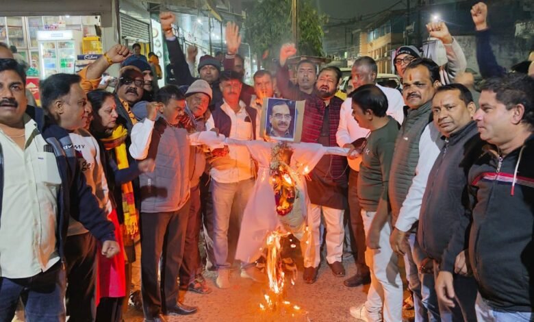 ब्राम्हण विरोधी बयान पर आईएएस का पुतला जलाकर जताया विरोध