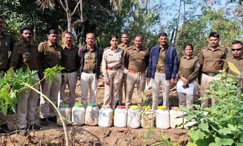 300 ग्राम महुआ लाहन, 18 लीटर हाथ भट्टी एवं 32 पाव देशी- विदेशी मदिरा बरामद