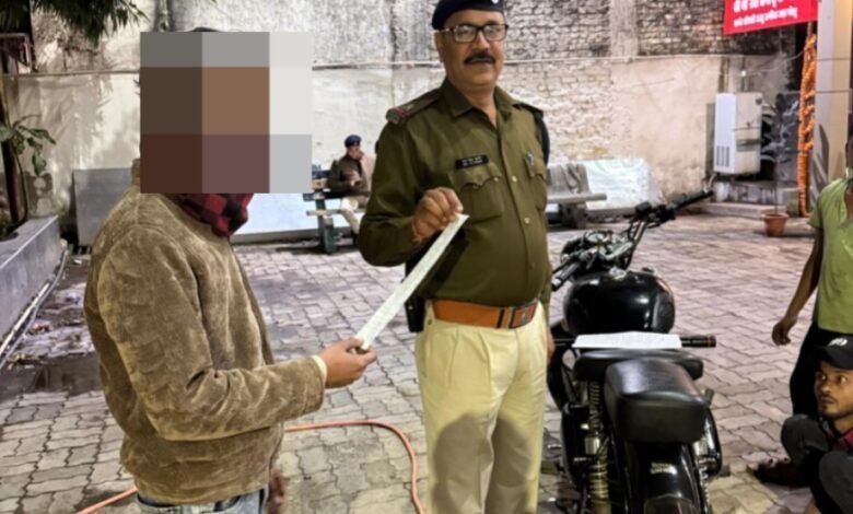 मॉडीफाई सायलेंसर वाली मोटर सायकिल चलाने का वीडियो सोशल मीडिया में अपलोड करने वाले वाहन चालक के विरूद्ध चालानी कार्यवाही