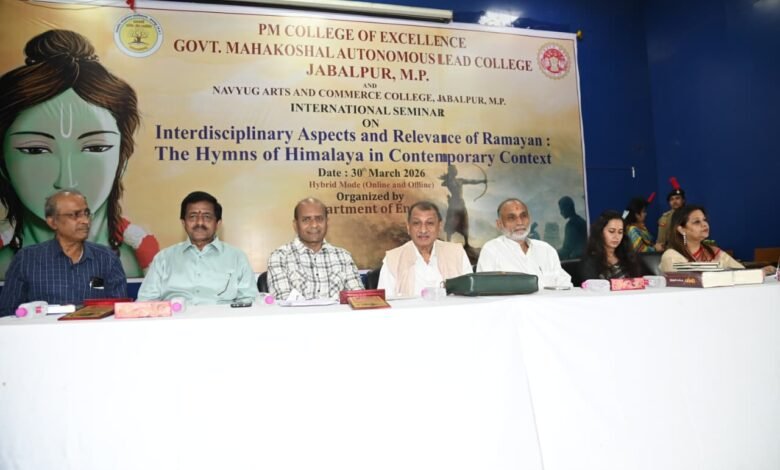 जबलपुर दर्पण । पीएम कॉलेज ऑफ एक्सीलेंस, शासकीय महाकोशल स्वशासी अग्रणी महाविद्यालय, जबलपुर एवं नवयुग आर्ट्स एंड कॉमर्स कॉलेज, जबलपुर के संयुक्त तत्वावधान में अंग्रेज़ी विभाग द्वारा “रामायण के अंतर्विषयी आयाम एवं समकालीन प्रासंगिकता: हिमालय की स्तुतियाँ” विषय पर एक दिवसीय अंतर्राष्ट्रीय संगोष्ठी का आयोजन हाइब्रिड मोड (ऑनलाइन एवं ऑफलाइन) में किया गया।