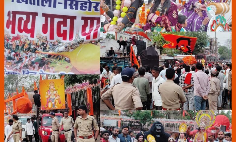 गदा यात्रा एवं बंघी में सवार श्रीराम सीता, शिव पार्वती, हनुमानजी के स्वरूप में इन्दौर से आए हुए राम भक्त एवं नगर के भक्तों द्वारा भगवा ध्वज लहराते हुए जय सियाराम जय सियाराम की गूंज के साथ यात्रा को सफल बनाया।