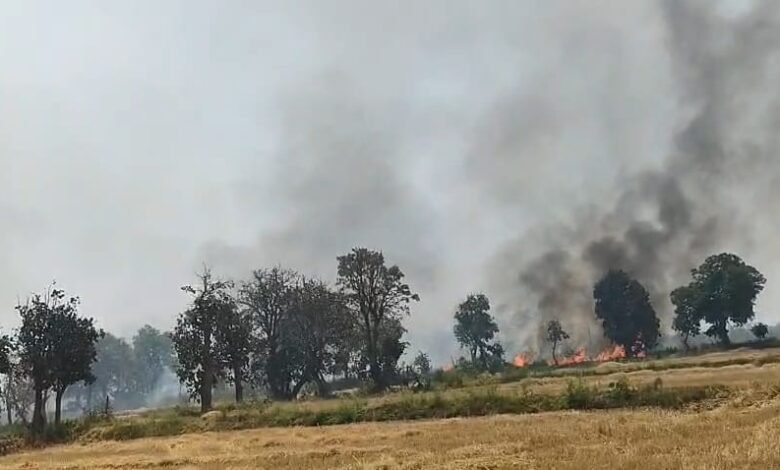 मझौली तहसील के अंतर्गत आने वाले गाँव सरोदा टिकुरी माडला मै गेंहू की फसल मै लगी आग