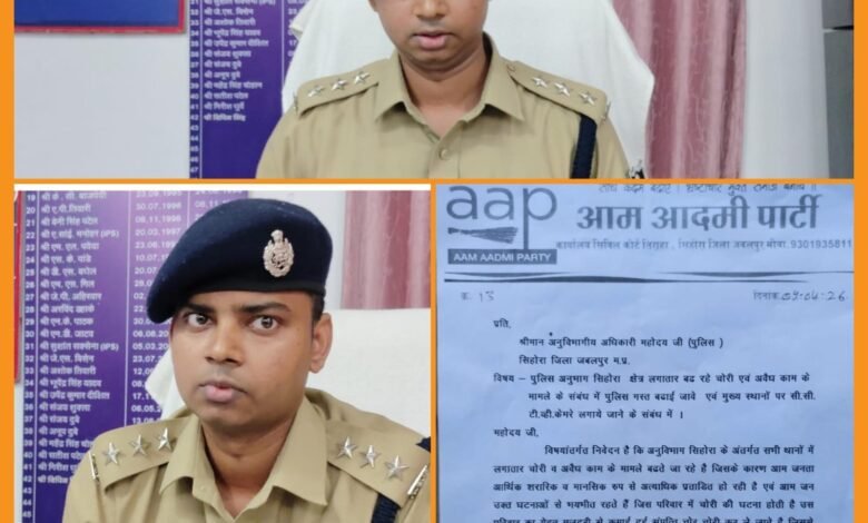 सिहोरा क्षेत्र में सी.सी.टी.व्ही .केमरे एवं पुलिस गस्त बढाने की उठी मांग , आम आदमी पार्टी सिहोरा के सदस्यों ने एसडीओपी को सौंपा ज्ञापन