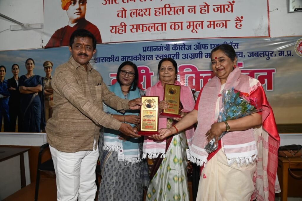 प्रधानमंत्री कॉलेज ऑफ़ एक्सीलेंस, शासकीय महाकोशल स्वशासी अग्रणी महाविद्यालय, जबलपुर द्वारा ”नारी शक्ति वंदन” पखवाड़ा के अंतर्गत आज दिनांक 13/04/2026 को व्याख्यान कार्यक्रम का आयोजन किया गया। कार्यक्रम मे मुख्य वक्ता के रुप में डॉ. निशा तिवारी, 81 वर्षीय प्रख्यात लेखिका एवं आलोचक ने अपने उद्बोधन में नारी के साहित्यिक योगदान और उसके संघर्षो को रेखाकिंत किया। उन्होंने महिलाओं को आत्मनिर्भर बनने और अपनी प्रतिभा को पहचानने के लिए प्रेरित किया। नारी केवल शक्ति नहीं, बल्कि सृजन, संस्कार और समाज की आधारशिला है।