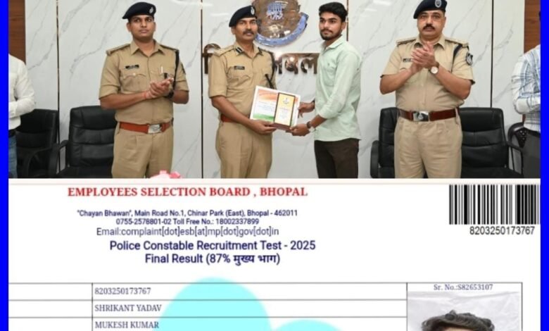 मनीष श्रीवास जबलपुर। भोपाल मध्यप्रदेश में पुलिस भर्ती कर्मचारियों एवं चयन मंडल के परीक्षा परिणाम आते ही नवयुवाओं में चमक और उत्साह देखने को मिला हैं।