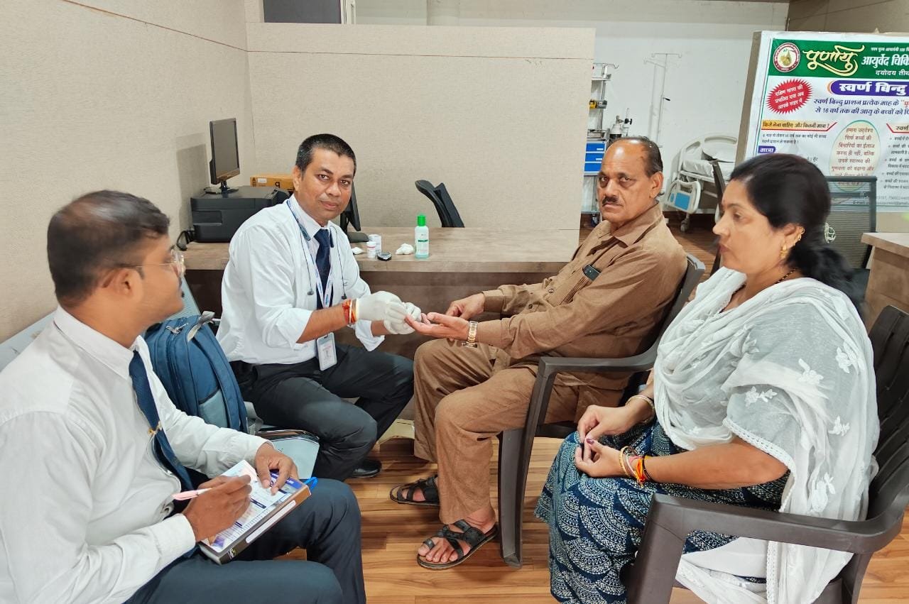 जबलपुर दर्पण। पीडि़त का अगर सेवाभावी कार्य से उनकी दुख व परेशानियां दूर हो सके, तो यह परमात्मा की सच्ची सेवा होती है, इसी सेवा कार्य के तहत जरूरतमंद व तमाम पीडि़तों के लिए श्री धूतपापेश्वर फार्मा विक्रम डिवीजन एवं पूर्णायु आयुर्वेद चिकित्सालय एवं अनुसंधान विद्यापीठ तिलवारा घाट जबलपुर के संयुक्त तत्वाधान में 26 जून को पूर्णायु चिकित्सालय में नि:शुल्क चिकित्सा परामर्श शिविर का आयोजन किया गया। जिसमें दर्जनों मरीजों का नि:शुल्क शुगर जांच किया गया एवं लगभग 120 मरीजों का नि:शुल्क स्वस्थ परीक्षण किया गया। शिविर के दौरान डॉ स्वप्निल सिंघई प्राचार्य, डॉ अमित मुखर्जी, डॉ गौरव शाह, डॉ अमोल डोंगरे, डॉ लीना, डॉ स्वाती द्वारा रोगियों का स्वस्थ परीक्षण किया गया। डॉ चैताली शाह द्वारा महिलाओं का स्वस्थ परीक्षण कर गर्भ संस्कार के बारे में बताया गया। डॉ मनोज पटेल द्वारा आहार विहार संबंधी पथ्य, अपथ्य संबंधी सलाह दी गई एवं योग विशेषज्ञ नीतू अरजरिया द्वारा मधुमेह में किए जाने वाले योगासन एवं प्राणायाम संबंधी जानकारी प्रदान की गई। डॉ सतीश एवं डॉ हर्षलता के निर्देशन में शुगर परीक्षण किया गया। इस शिविर में डॉ शुभम जैन, डॉ पलक, डॉ पायल चिकित्सा अधिकारियों और श्री धूतपापेश्वर फ ार्मा द्वारा श्री राजेश एवं श्री पप्पू का योगदान रहा।