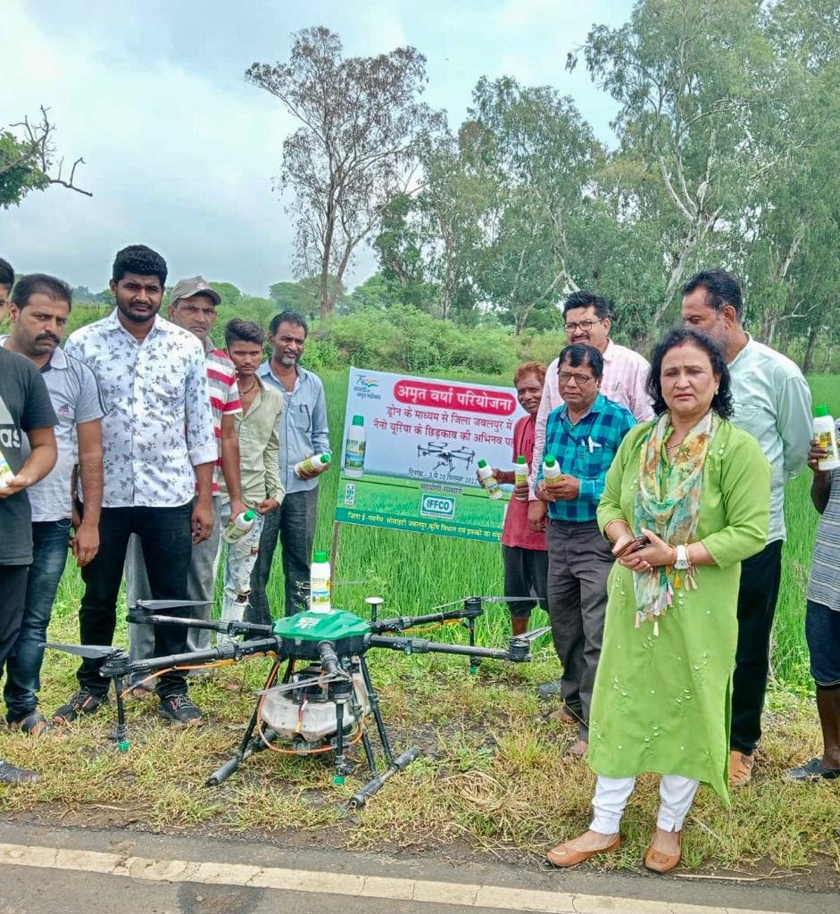 जबलपुर दर्पण पाटन ब्यूरो/राजेंद्र सिंह की रिपोर्ट। अमृत वर्षा परियोजना के तहत ग्राम भोरदा में नेनो यूरिया का ड्रोन से धान फसल पर स्प्रे का शुभारम्भ 02 सितम्बर 2022 को विधायक अजय विश्वनोई, कलेक्टर जबलपुर डॉ.इलैया राजा टी,उपसंचालक कृषि जबलपुर डॉ.एस.के.निगम, इफ्को से राजेश मिश्रा द्वारा किया गया। परियोजना के तहत नेनो यूरिया का छिडकाव ड्रोन के द्वारा ग्राम झामर,उमरिया, पिपरिया,अमरपुर आदि ग्रामों में किया गया। कृषक सर्वेश पटेल, रामविनय करसोलिया,गोपाल दास साहू,ओमकार पटेल,नीलेश पटेल,राजेन्द्र पटेल के खेतों में ड्रोन से नेनो यूरिया का धान की फसलों पर छिडकाव किया गया